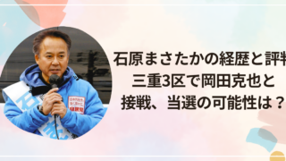 政治・経済 石原まさたかの経歴と評判|三重3区で岡田克也と接戦、当選の可能性は?