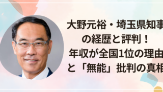 埼玉県の大野元裕知事が「年収全国トップ」というニュースを見て、驚いた方も多いのではないでしょうか。「なんでそんなにもらってるの?」「埼玉県知事ってどんな人?」「無能って言われてるけど実際どうなの?」と気になって検索した人も多いはずです。実際...