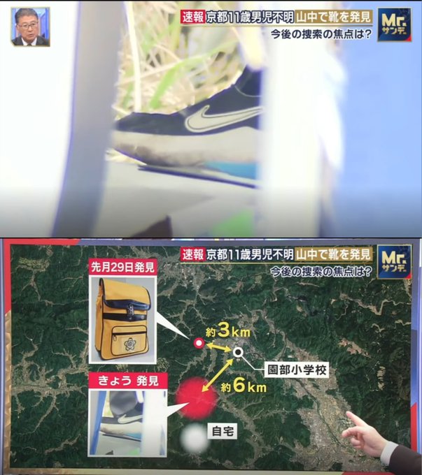 ・靴は「自宅と小学校の中間地点の山中」で発見