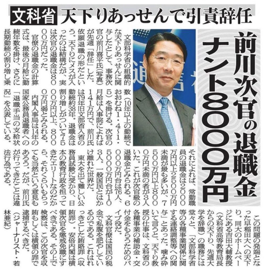 一方で、天下り問題、加計学園告発、出会い系バー報道、