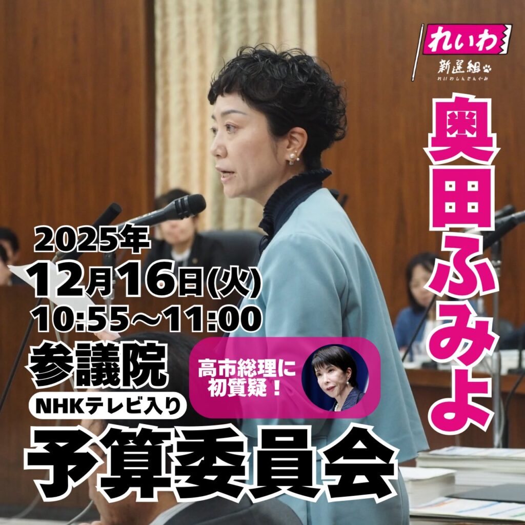奥田ふみよは、れいわ新選組所属の参議院議員。