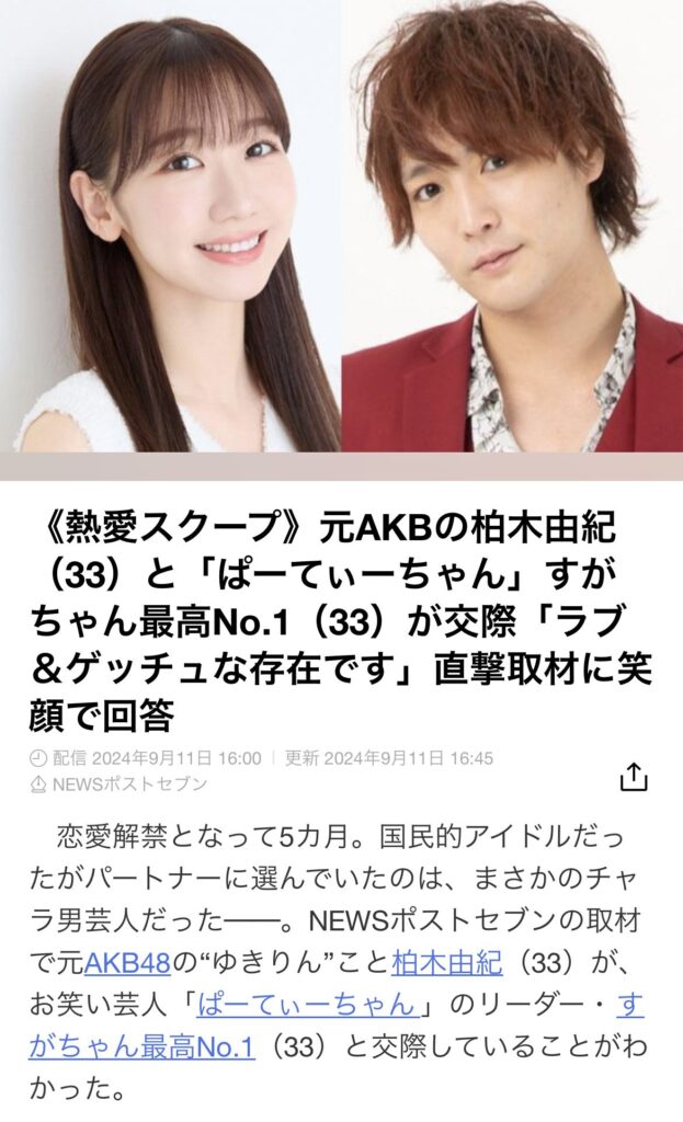 ✔ 柏木由紀との結婚報道とどう関係しているのか