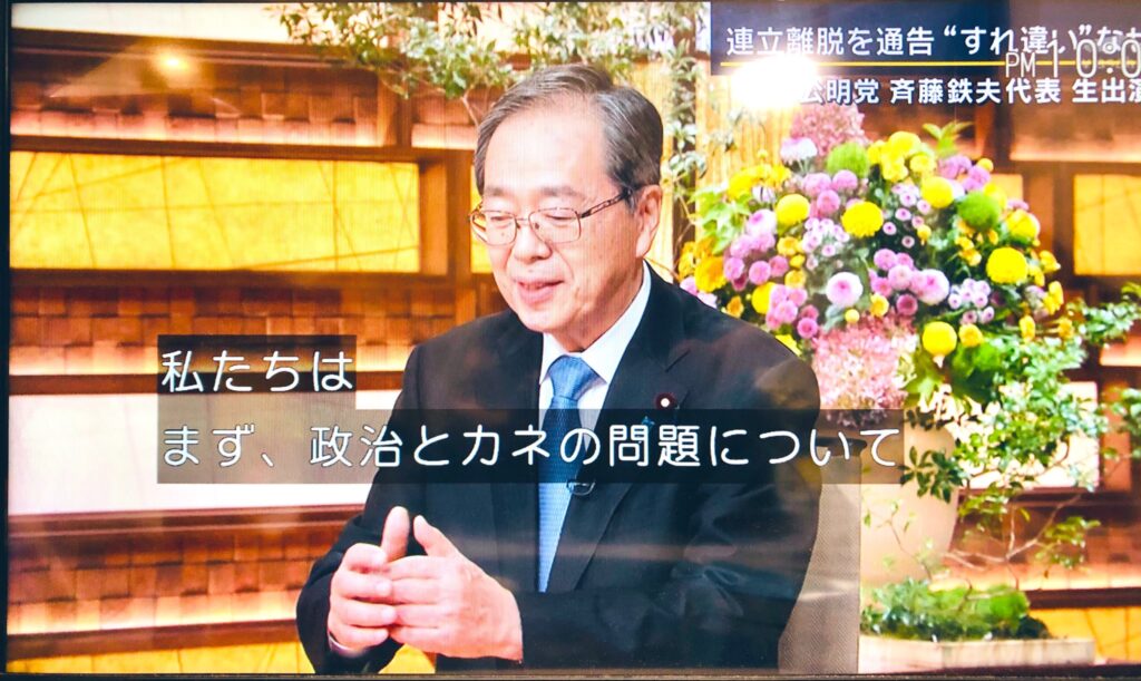 1️⃣ 公明党が連立を離脱したこと、
